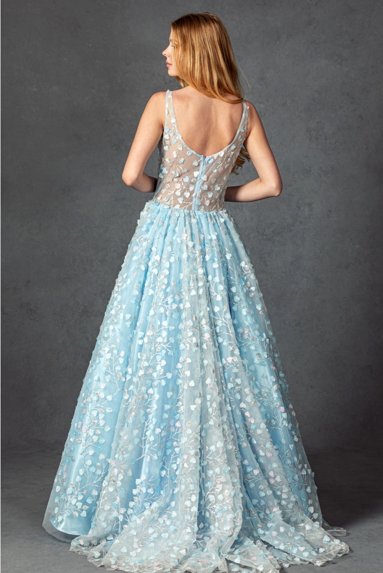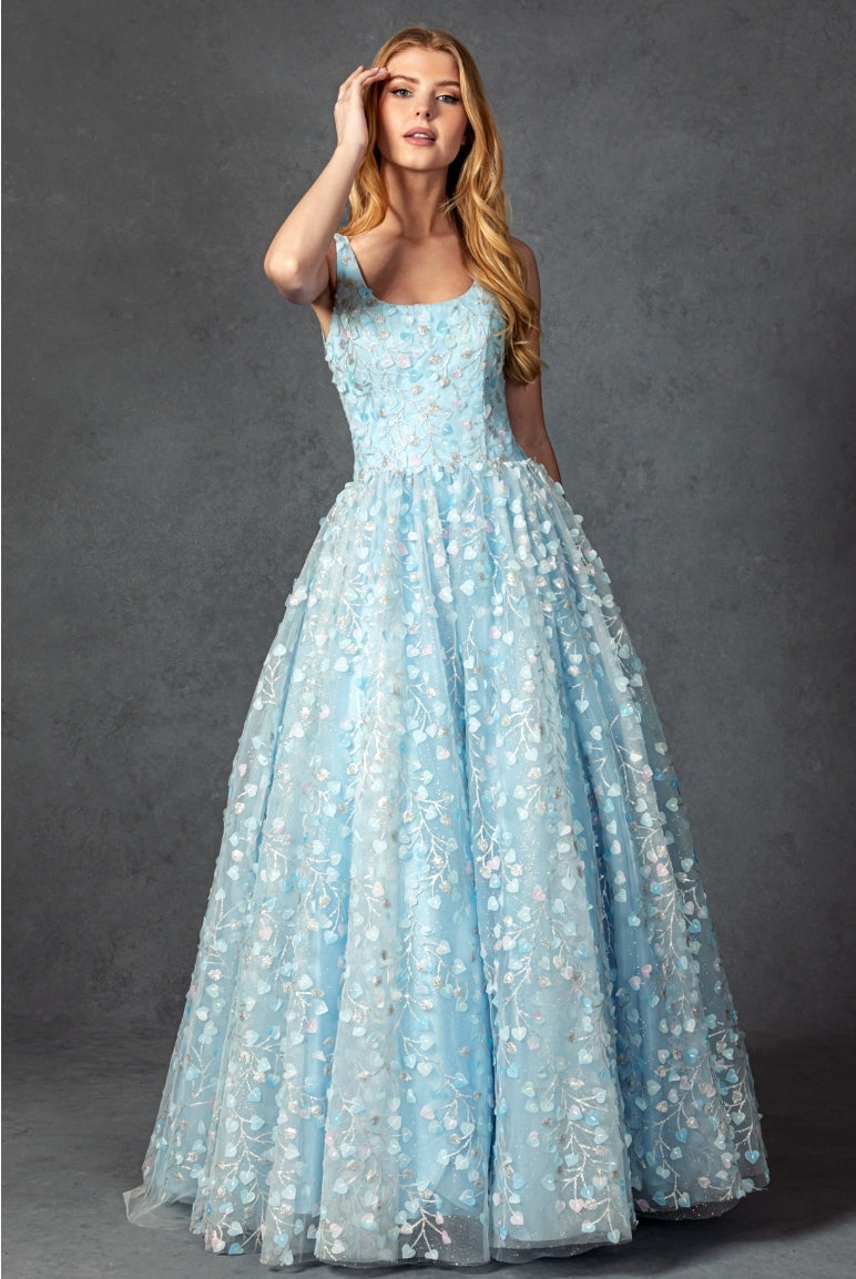 Introducing the Bicici & Coty CP2115, a must-have for any stylish woman. This sleeveless, scoop neck ballgown features delicate and elegant flower details that will make you feel like a vision of beauty. Embrace your inner grace and sophistication with this exquisite dress.