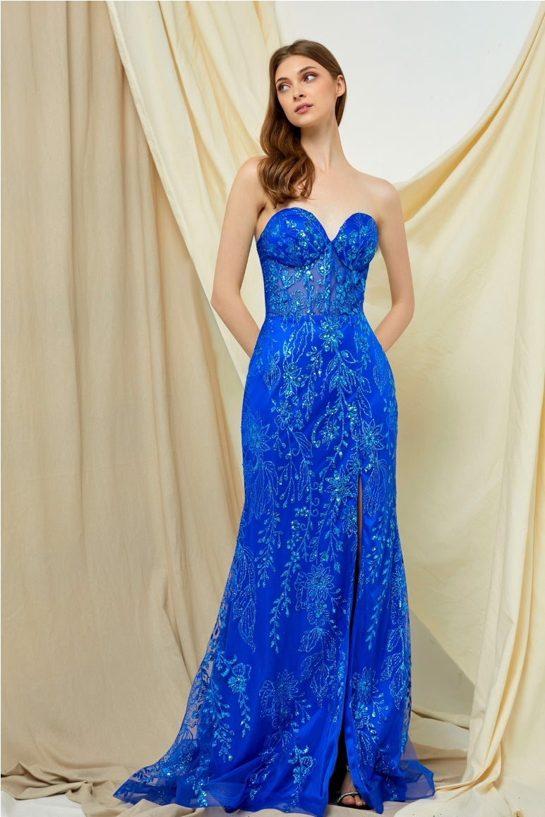 The Bicici & Coty MZ5419 dress helps you stand out with its off-shoulder bodice, detachable sleeves, sheath silhouette, and slit with lace up back. The tulle skirt adds an extra touch of glamour with its glitter embroidery and sequins. Optional sleeves provide a versatile look. Perfect for special occasions, this standout dress ensures you make a lasting impression.