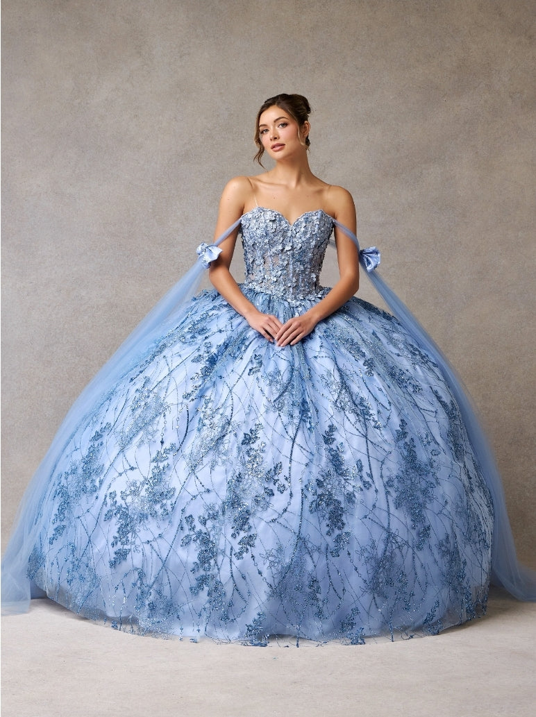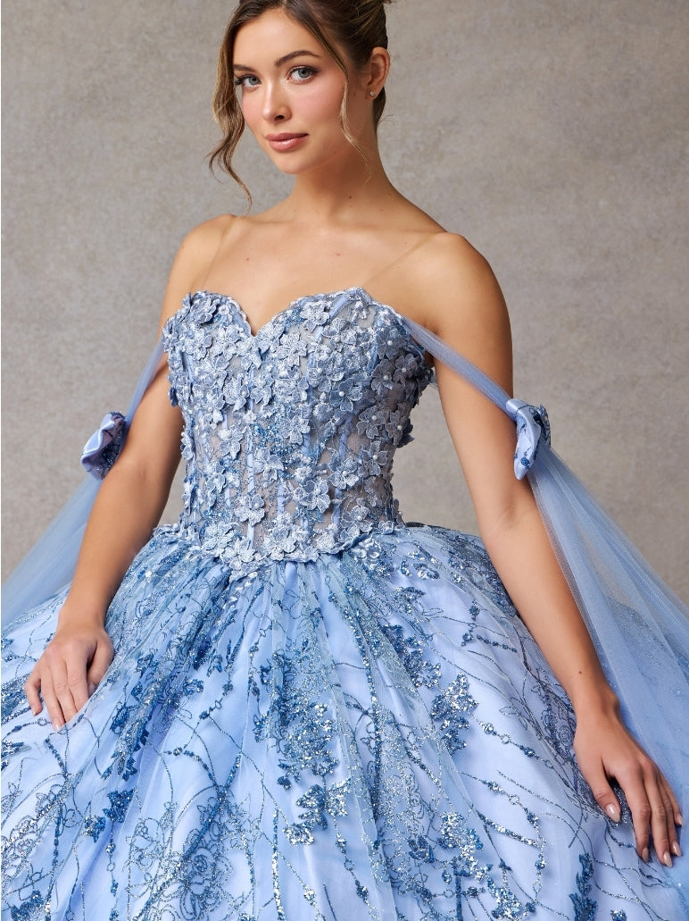 Indulge in luxury with our Bicici & Coty PS5350 ball gown. Off the shoulder design with a corset top and clear straps for an elegant and elaborate look. Feel like a princess with this exquisite piece that's sure to turn heads.