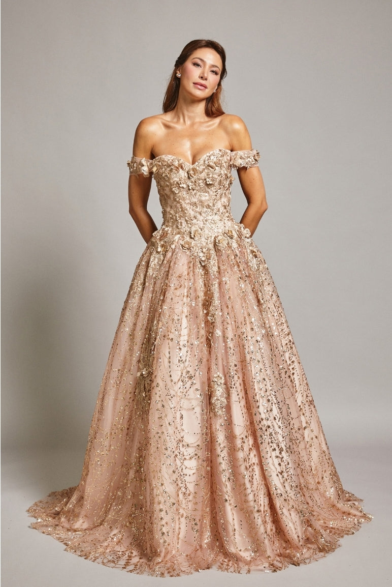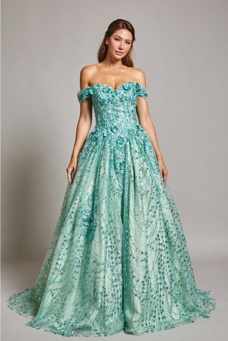 For the most special day in a young woman's life, the Bicici & Coty WF7312 dress is the perfect choice. Boasting an off-shoulder ballgown silhouette adorned with exquisite sequins, beading, 3D flowers, and glitter lace, this showstopper is sure to make her feel beautiful, confident, and like the special person she is. Accented with embroidery and crystals, this dreamy gown is perfect for any quinceañera or sweet 16.
