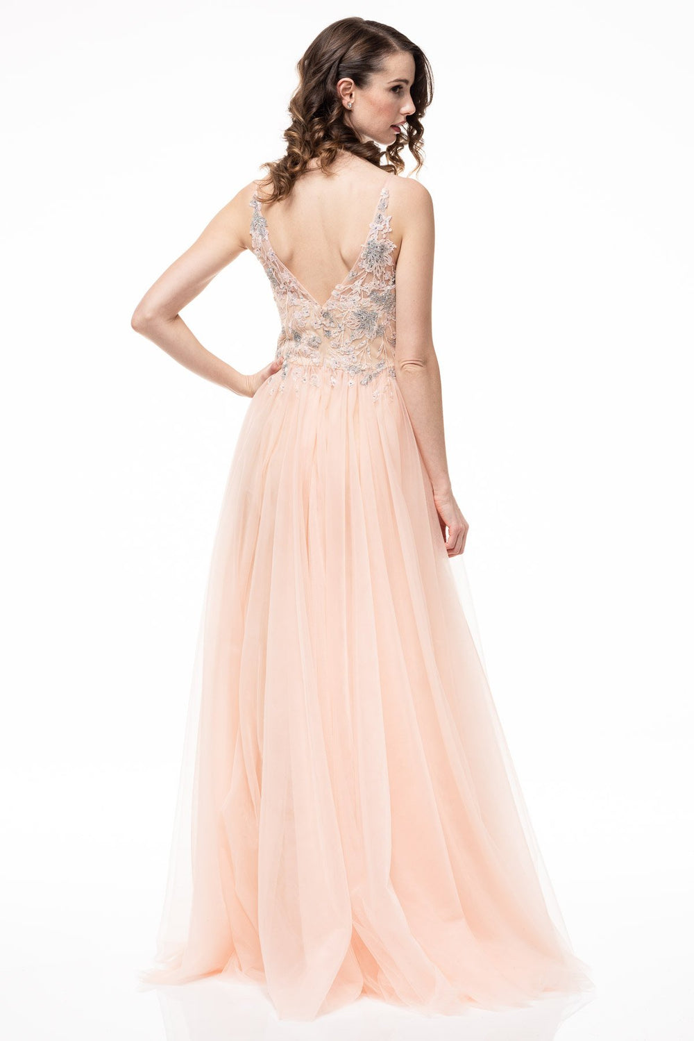 The Bicici & Coty YD0856 is a stunning tulle gown that is sure to turn heads at your next event. Cut in an A-line silhouette, this dress features a V-neckline in the front and back, as well as intricately embroidered detailing on the front and back for a luxurious look. Timeless and elegant, this dress is perfect for formal occasions.