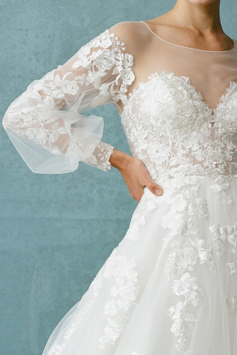This Bicici & Coty ACW19715 wedding gown is sure to make an unforgettable statement. Made with exquisite 100% polyester, tulle, embroidery, lace, beading, and sequins, this beautiful off-white gown will have heads turning. Let this gown make your special day even more memorable.
