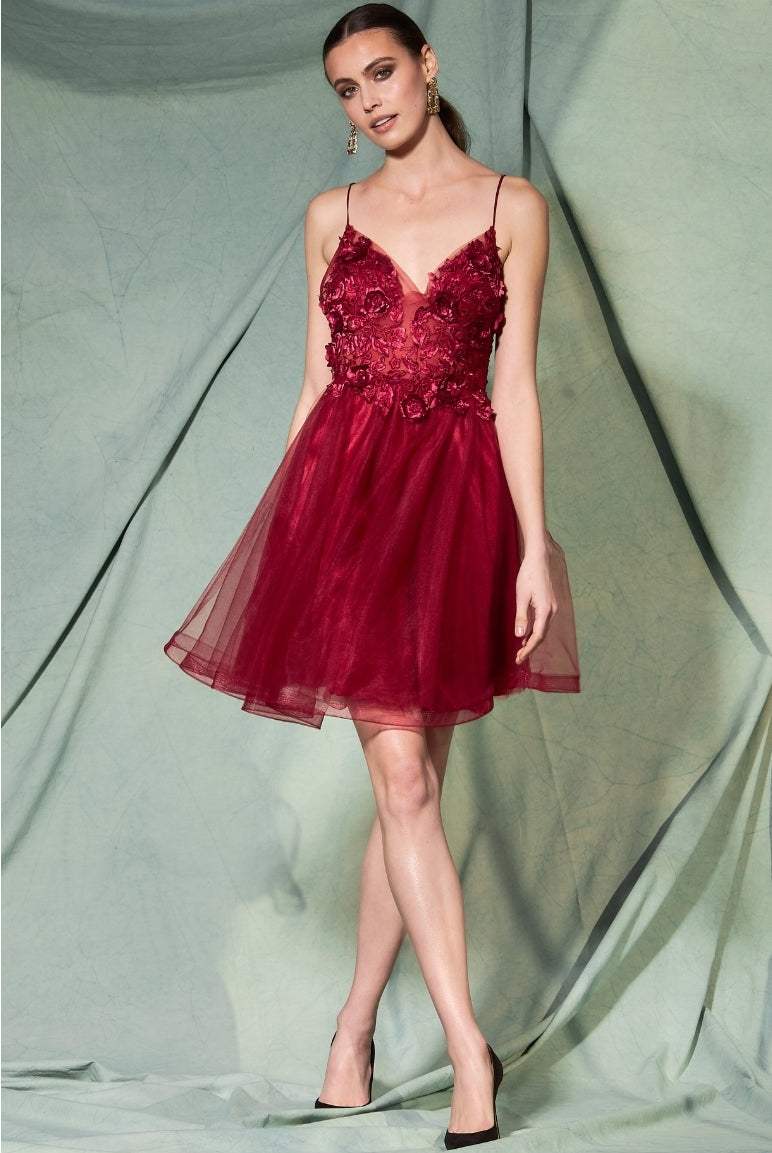 Grace your special day in this luxurious Bicici & Coty EF0023S dress that exudes sophistication. Adorned with intricate tulle and detailed embroidered 3D flowers, it showcases beading for an unmatched glamour. Boasting a sleeveless, V-Neck, sweetheart bodice and short hemline, this dress is a true masterpiece.