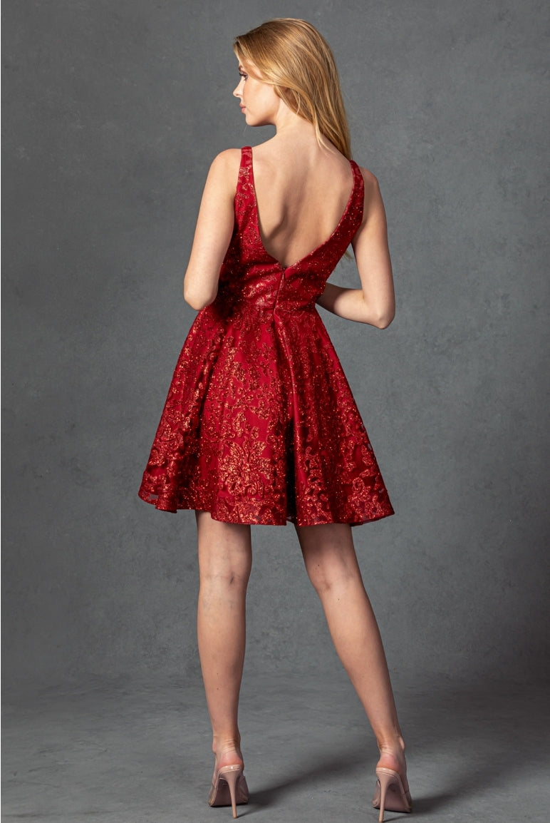 Introducing the luxurious Bicici & Coty WF250S. This exquisite sleeveless dress is cut with a flattering V-neckline and features an intricately designed tulle construction and glitter accents for added glimmer and sparkle. Side pockets on the skirt add a hint of practicality. Turn heads at your next special event in this stylish and sumptuous cocktail dress.