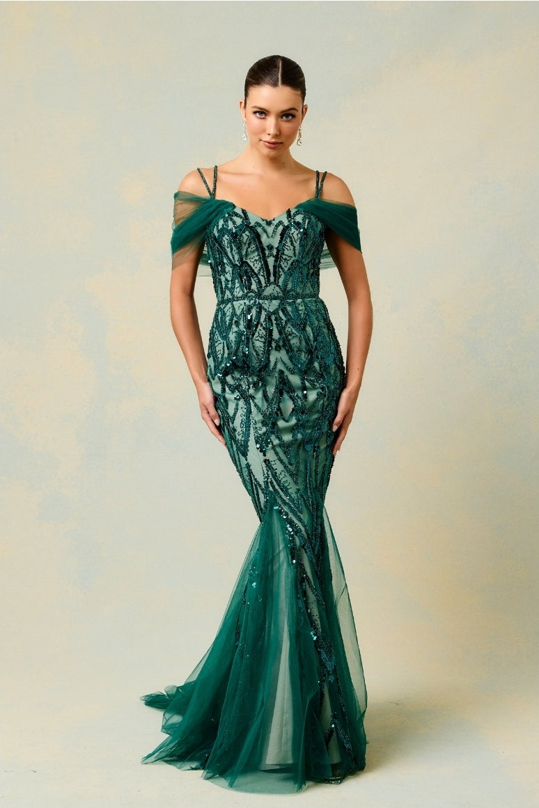 Indulge in effortless elegance with the Bicici & Coty MC3012 dress. Featuring an off-shoulder, sweetheart neckline and a sleek sheath silhouette, this dress is perfect for a gala or formal event. Its modest coverage adds a touch of sophistication to your look. Elevate your style game with this luxurious piece.