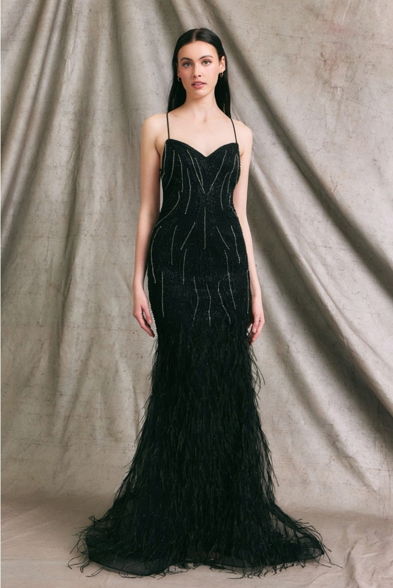 This exquisite prom dress by Bicici & Coty is perfect for making a statement. Crafted with luxurious lace up back and exquisite feathers details and small train, it is sure to turn heads at your special event. Its sleek, sleeveless silhouette with sweetheart neckline and mermaid style, it creates an elegant and timeless look.