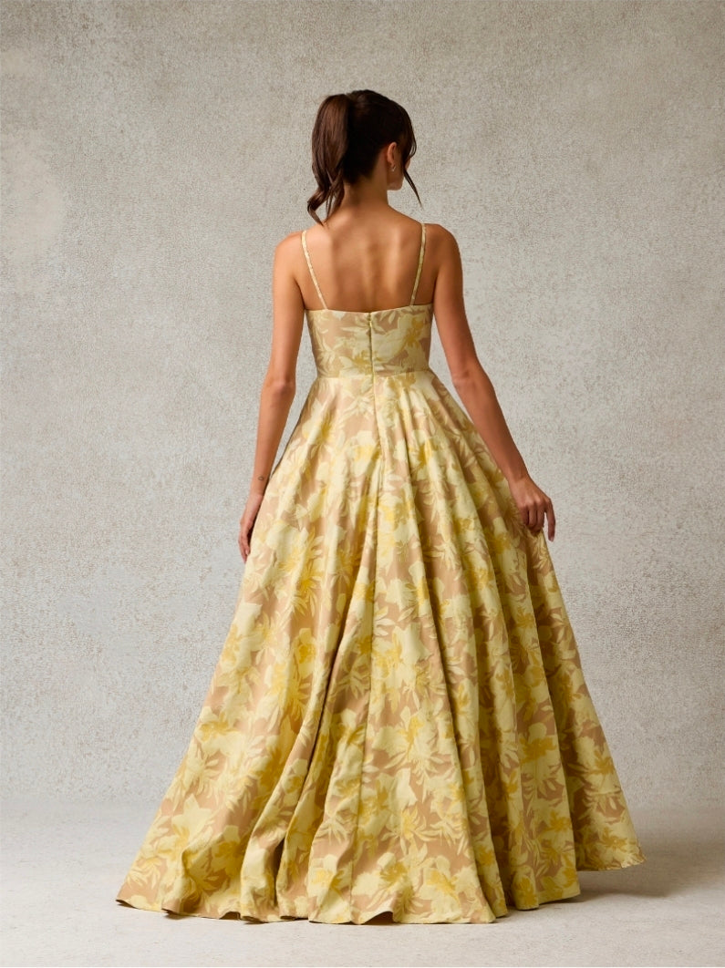 Elegant sleeveless A-line dress featuring a sweetheart neckline and delicate spaghetti straps. Crafted from luxurious heavy fabric that drapes beautifully, this timeless silhouette flatters every figure. Practical side pockets add everyday functionality to this sophisticated design. Perfect for special occasions or elevated everyday wear.