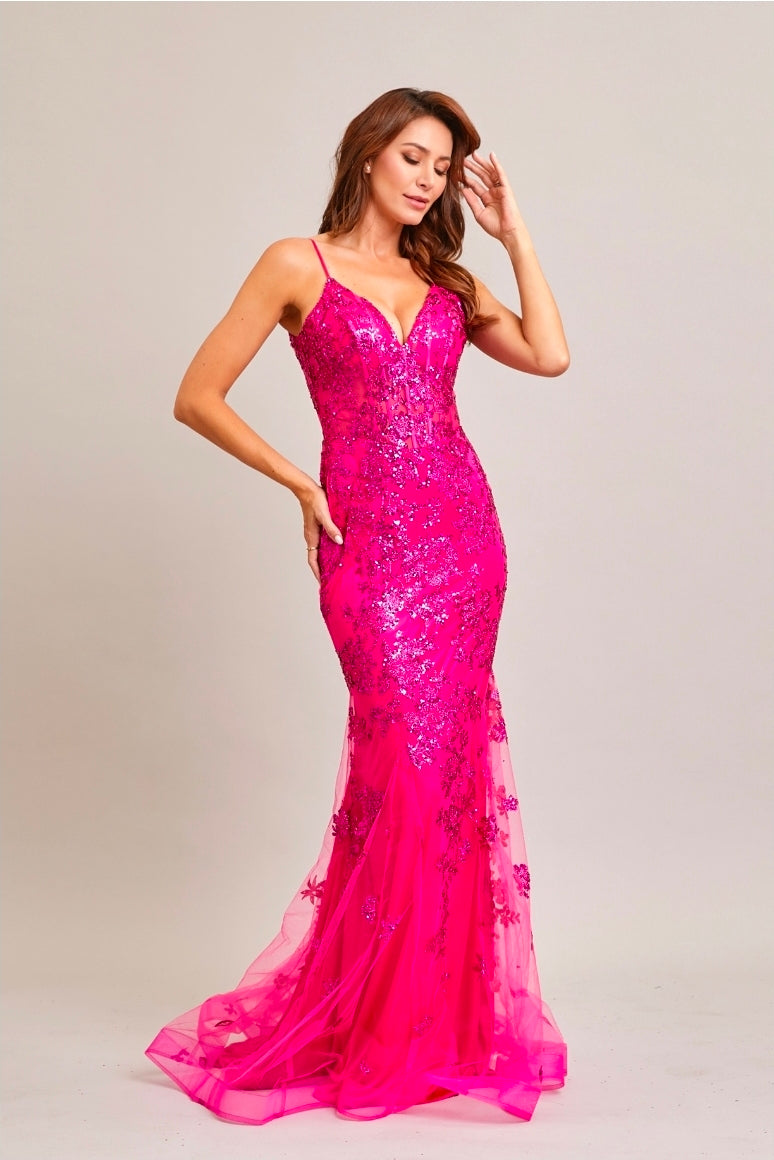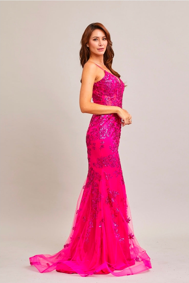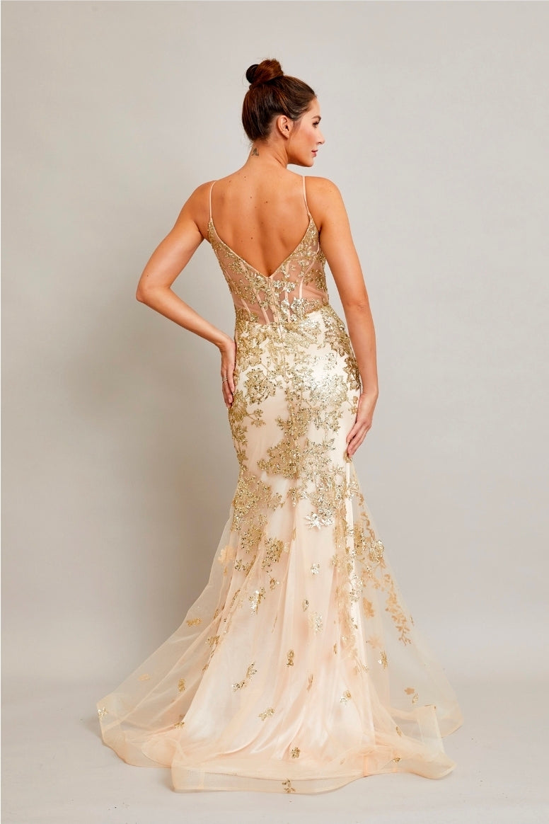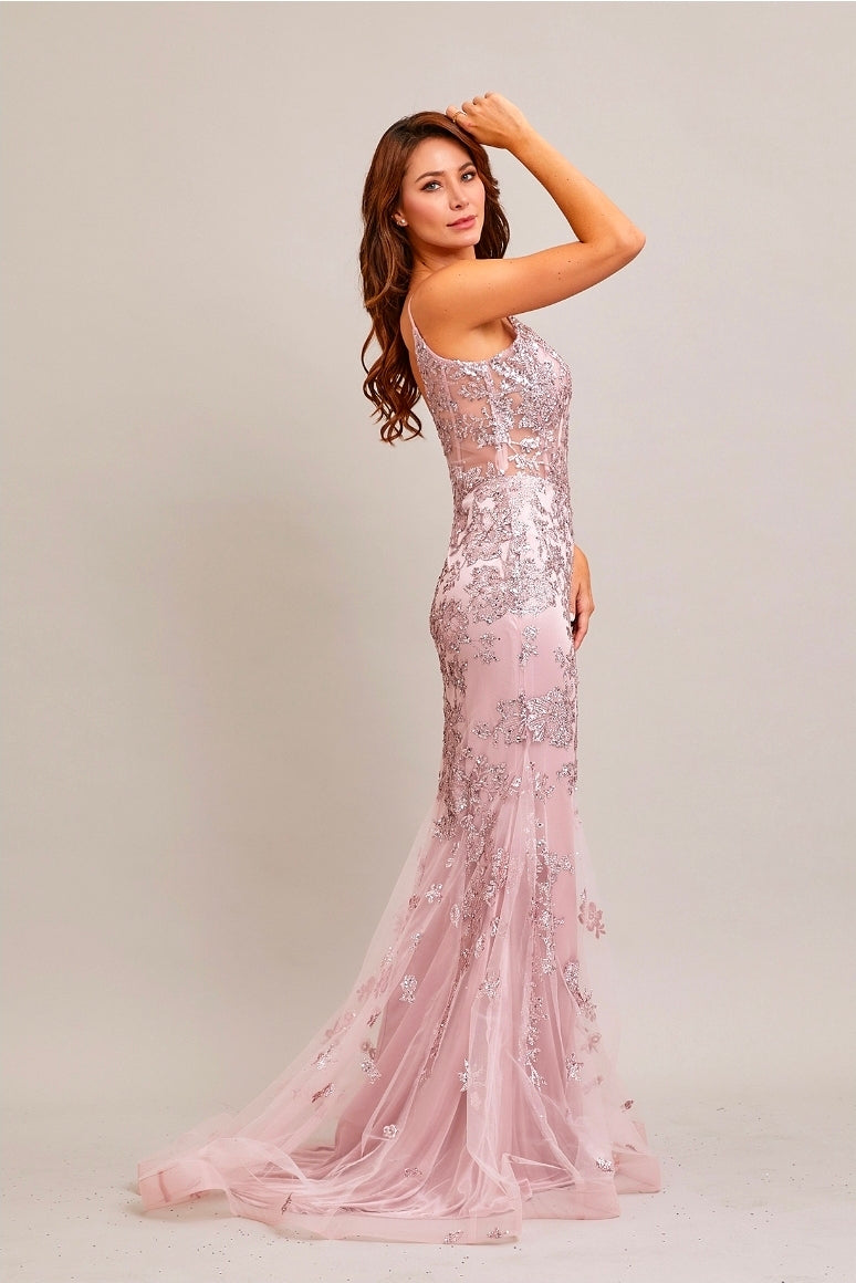 Embrace timeless elegance with this stunning sleeveless mermaid gown. The sweetheart neckline and delicate spaghetti straps frame the shoulders beautifully, while shimmering glitter fabric catches the light with every movement. A structured corset bodice hugs the curves, flowing into a dramatic mermaid silhouette that flatters the hips. The lace-up back adds an alluring detail and allows for a customized fit. Perfect for formal events, galas, or unforgettable evenings where sophistication meets glamour.