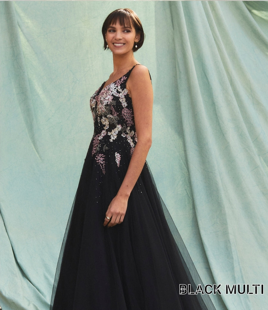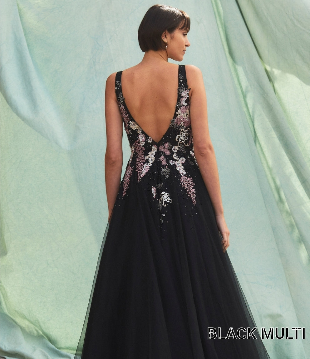 Make a statement in the Bicici & Coty CB15383 dress. This elegant sleeveless ballgown features a V-neck and open back, perfect for a prom or wedding. The tulle fabric is adorned with intricate embroidery and dazzling crystals, adding a touch of luxury to your special occasion.