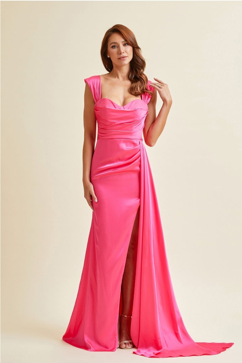 Experience the sophisticated elegance of Bicici & Coty TR59314. This timeless evening gown features an off-shoulder sweetheart neckline, sheath silhouette, and a stunning open skirt slit that brings a subtle modern touch. Crafted from luxurious stretch satin for a flawless fit, this piece is sure to turn heads at your prom, bridal shower, or special event.