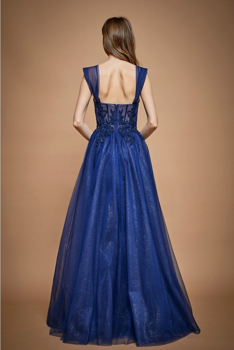 Transform into a vision of elegance with the Bicici & Coty YD0501. This navy off-shoulder dress features a sweetheart neckline and a flattering A-line silhouette that is accentuated by a corset bodice. Crafted in tulle, it boasts a full length hem and is perfectly suited for petite sizing. Make a lasting impression at your next event with this timeless piece.