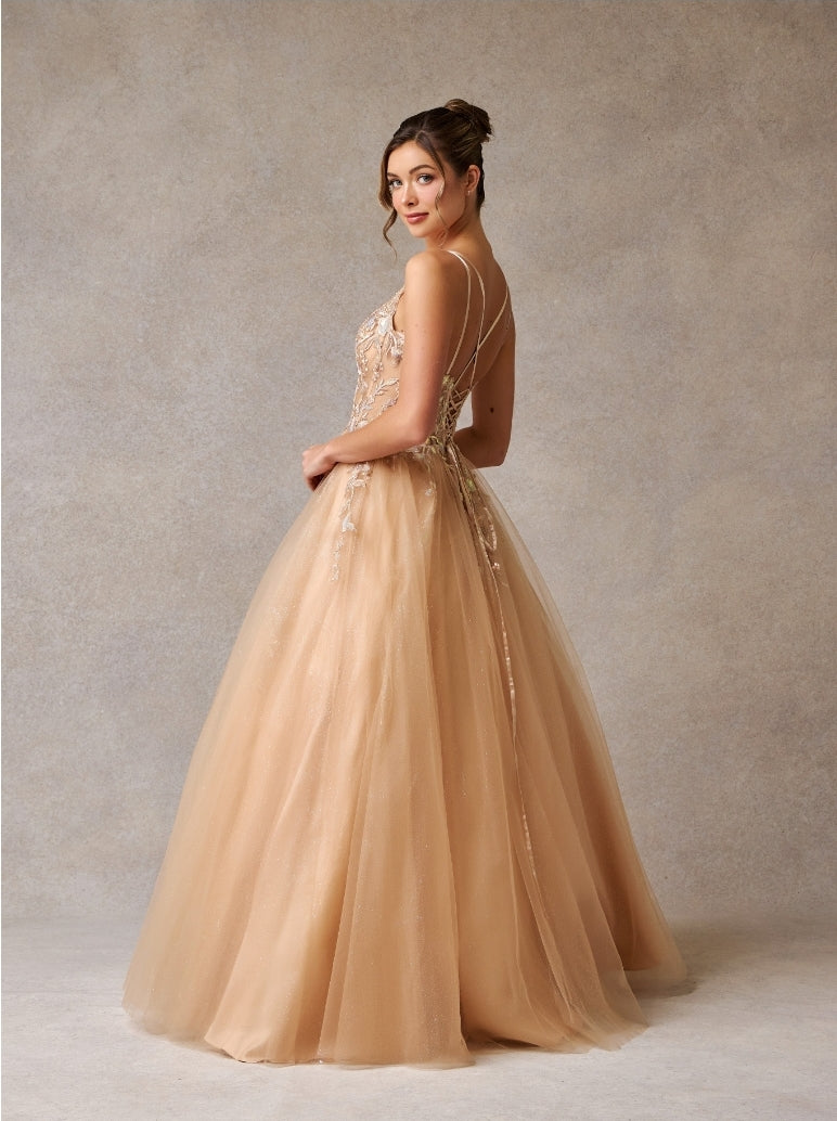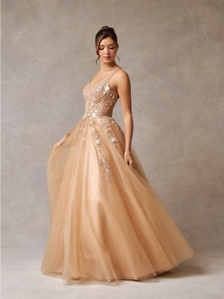 Introducing Bicici & Coty RD2431 - the ultimate in luxury fashion. Featuring a strapless, scoop neckline and a stunning ballgown silhouette, this dress will make you feel like royalty. The corset top and cross-tied back provide elegant structure, while delicate lace details add a touch of sophistication. Elevate your wardrobe with this exclusive piece.