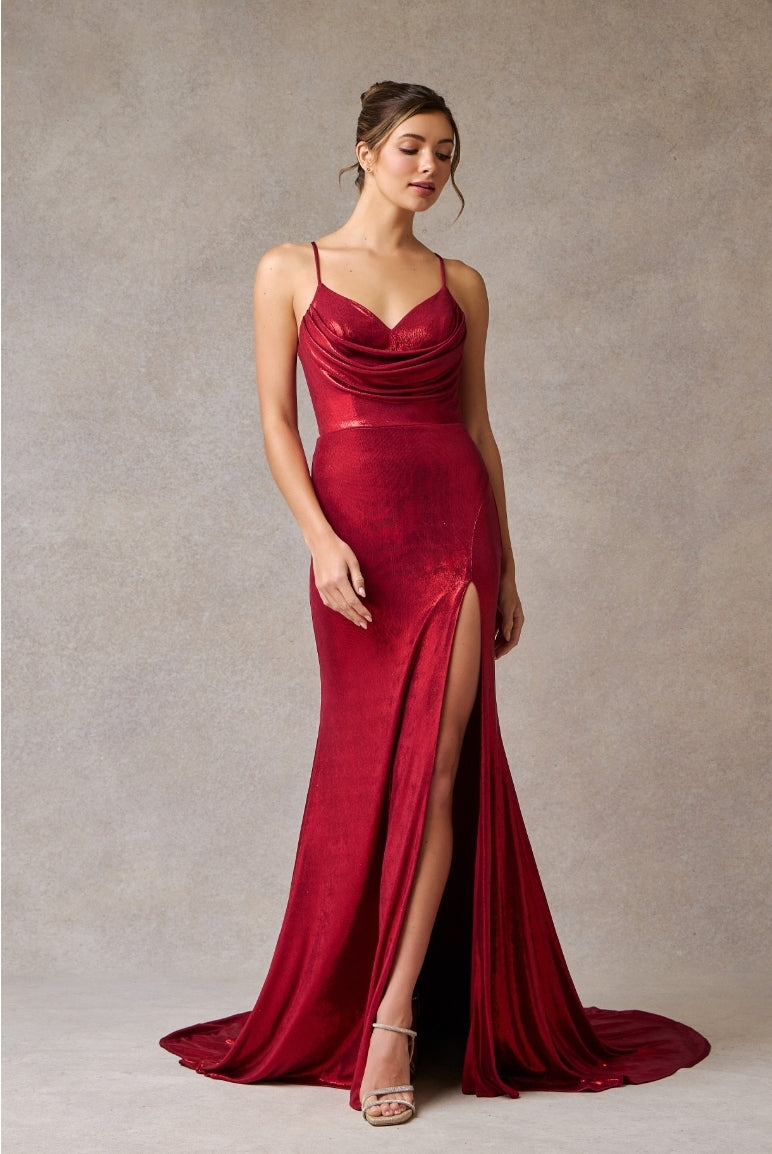 Indulge in the simple elegance of our Bicici & Coty MD2385 dress. This sleeveless sheath with a sweetheart neckline and slit detail exudes luxury and sophistication. The stretchy fabric ensures a comfortable and flattering fit, making it the perfect choice for any occasion.